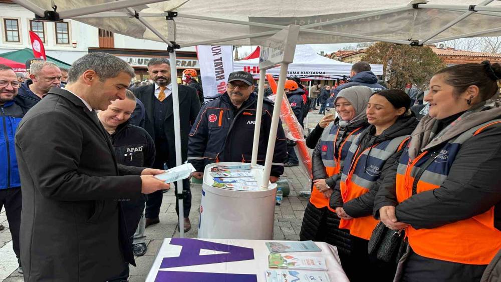 Anma programı çerçevesinde Uşak Belediyesi Yöresel Ürünler Çarşısı önünde kurulan kamu kurumları ve sivil toplum kuruluşlarının stantlarını gezen Uşak Valisi Naci Aktaş, yürütülen çalışmalar hakkında yetkililerden bilgi aldı.
