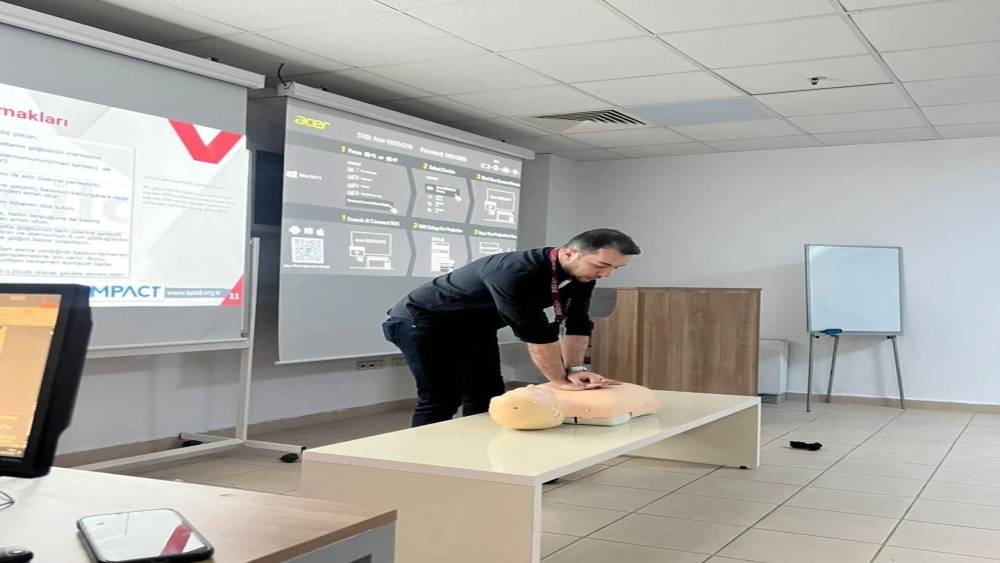 Aydın Adnan Menderes Üniversitesi (ADÜ) Araştırma ve Uygulama Hastanesi Radyoloji Bölümünde görev yapan sağlık çalışanlarına yönelik Temel Yaşam Desteği (CPR) eğitimi düzenlendi. Eğitimle, kontrast madde kullanımı sırasında ve sonrasında gelişebilecek muhtemel kardiyak arrest durumlarında doğru ve etkili müdahalenin sağlanması amaçlandı. Eğitim, Dr. Öğr. Üyesi Ahmet Melih Savaş tarafından teorik ve uygulamalı olarak gerçekleştirildi. Program kapsamında ani kalp durması durumunda yapılması gereken temel müdahaleler, doğru kalp masajı teknikleri ve solunum desteği uygulamaları ayrıntılı şekilde ele alındı. Eğitim süresince acil durumlarda hızlı ve doğru müdahalenin hayati önemi vurgulanırken, katılımcılar uygulamalı çalışmalarla bilgi ve becerilerini pekiştirme imkanı buldu. Aydın Adnan Menderes Üniversitesi (ADÜ) Araştırma ve Uygulama Hastanesi yönetimi tarafından yapılan açıklamada, sağlık hizmetlerinin kalitesini ve hasta güvenliğini artırmaya yönelik eğitim faaliyetlerinin tüm birimleri kapsayacak şekilde düzenli olarak devam edeceği belirtildi.