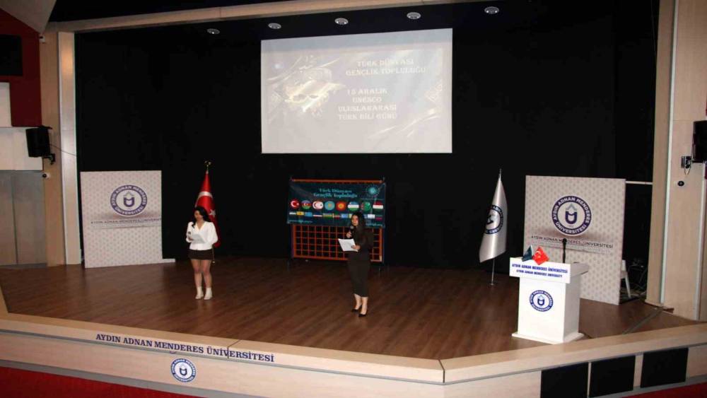 Aydın Adnan Menderes Üniversitesi’nde (ADÜ), Türk Dünyası Gençlik Topluluğu tarafından "15 Aralık UNESCO Uluslararası Türk Dili Günü" dolayısıyla konferans düzenlendi. 15 Aralık 2025 tarihinde Atatürk Kongre Merkezi Aydın Bey Salonu’nda gerçekleştirilen program, saygı duruşu ve İstiklal Marşı’nın ardından Azerbaycan Cumhuriyeti Milli Marşı ile Kazakistan Cumhuriyeti Milli Marşı’nın okunmasıyla başladı. Programın açılış konuşmasını yapan Türk Dünyası Gençlik Topluluğu Danışmanı Doç. Dr. Kemal Ramazan Haykıran, Türkçenin dünya üzerinde konuşulan diller arasında özel bir konuma sahip olduğunu belirtti. Türklerin Adriyatik’ten Çin Seddi’ne uzanan geniş bir coğrafyada farklı kültür ve inançlarla zengin bir dil mirası oluşturduğunu ifade eden Haykıran, Kaşgarlı Mahmud’un Türkçenin köklü yapısı ve zenginliğine dikkat çektiğini hatırlattı.