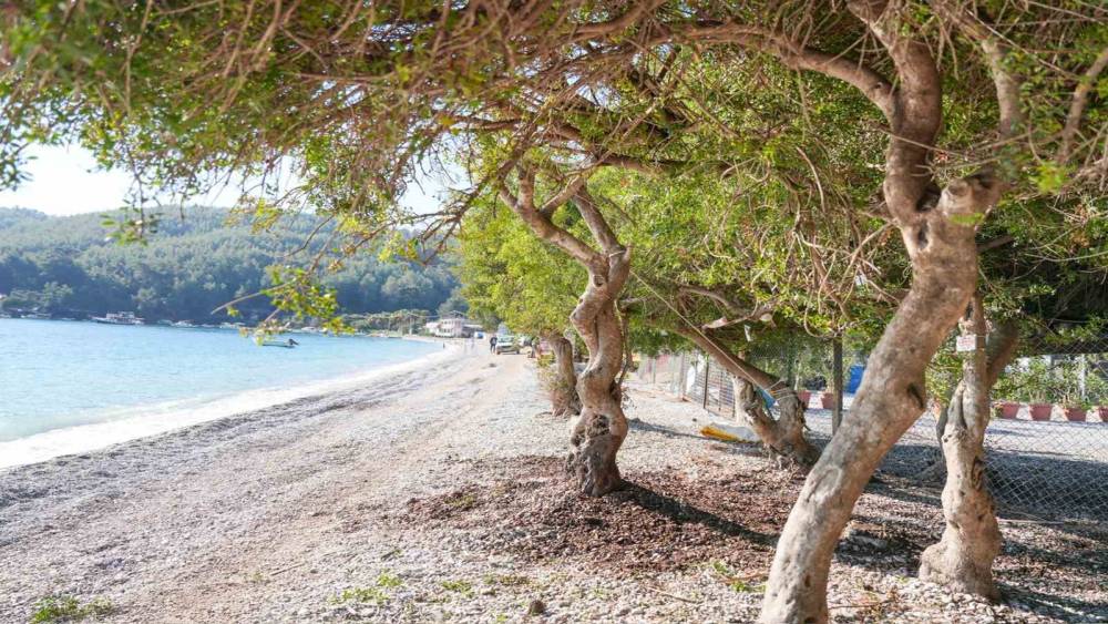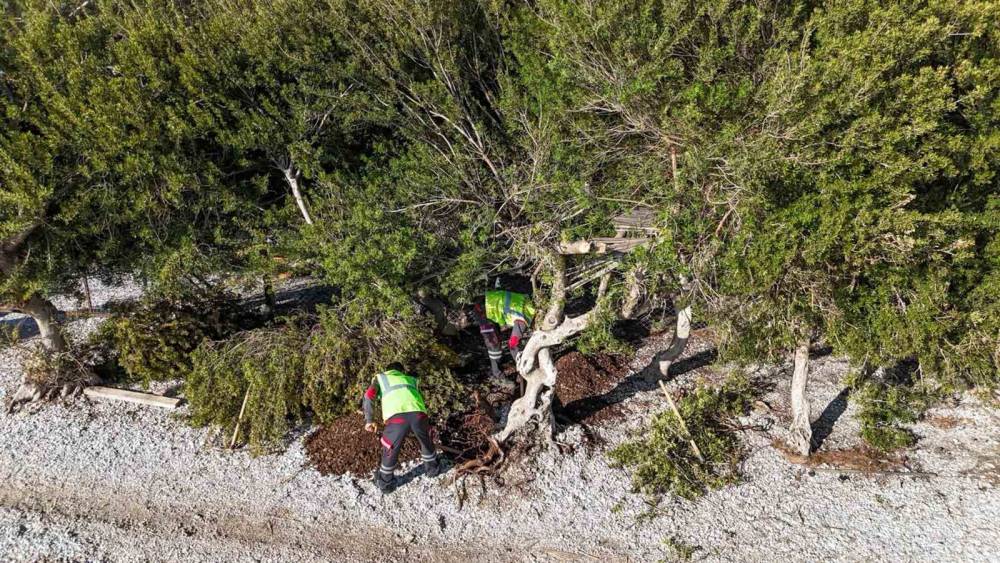 Menteşe Belediyesi ekipleri, Akbük Plajı’nda devrilen sakız ağacını, dokusuna zarar vermeden yeniden yerine dikti.