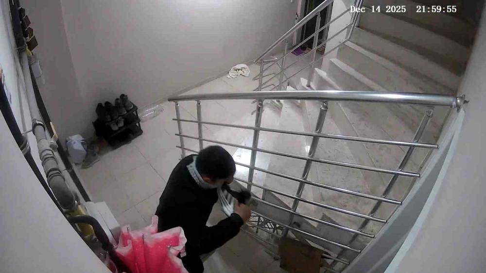 Apartmandan ayakkabı hırsızlığı kameraya yansıdı