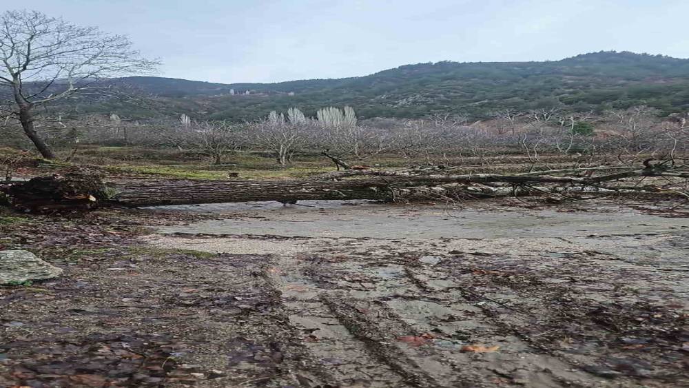 Denizli’nin Buldan ilçesinde hafta sonu yağışla birlikte etkili olan şiddetli fırtına, günlük hayatı olumsuz yönde etkiledi. İlçeye bağlı Çaybaşı Mahallesi Dr. Behçet Uz Caddesi 2. Çıkmazda bulunan asırlık kavak ağacı, şiddetli fırtınaya daha fazla dayanamayarak devrildi. Devredilen asırlık ağacın 1 metre çaplı dev gövdesi, yolu kapattı. Bölgeye ulaşım yapılan yolu kapatan asırlık çınar ağacının gövdesi, parçalanarak bölgeden kaldırıldı.