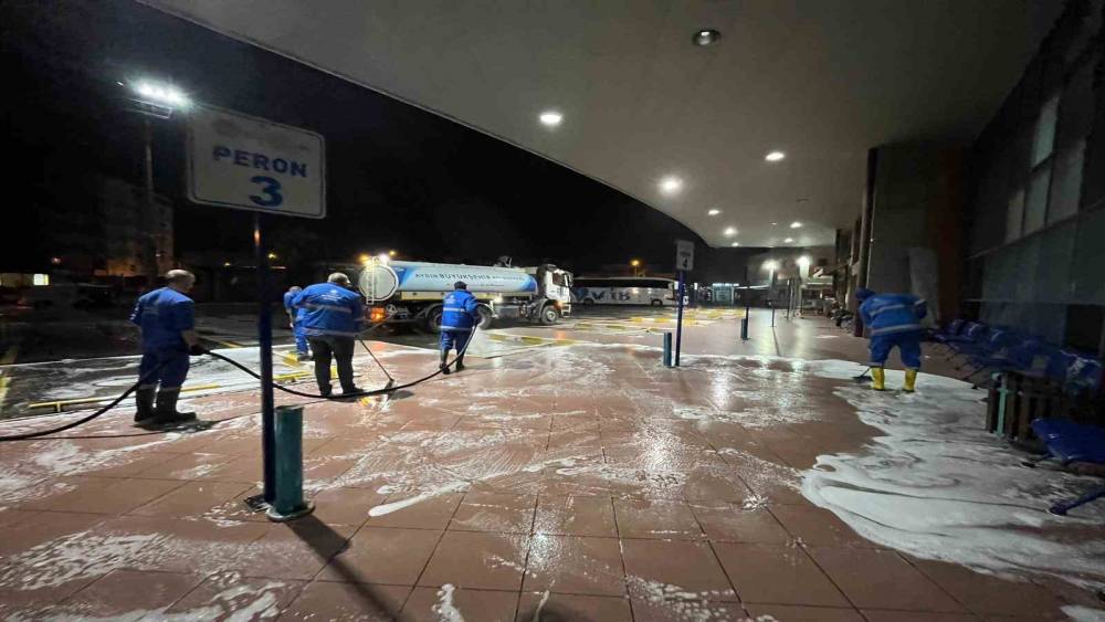 Eş zamanlı olarak yürütülen temizlik çalışmaları ile Aydın genelindeki terminaller Ramazan Bayramı öncesinde temizlendi.
