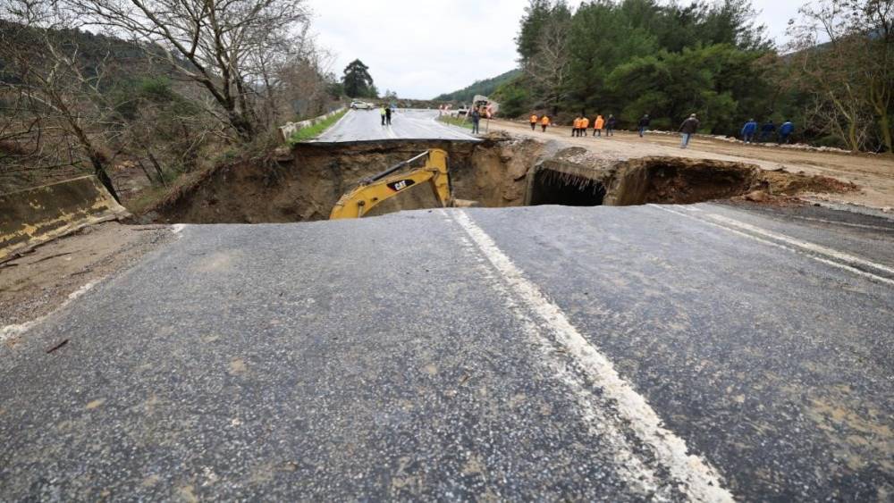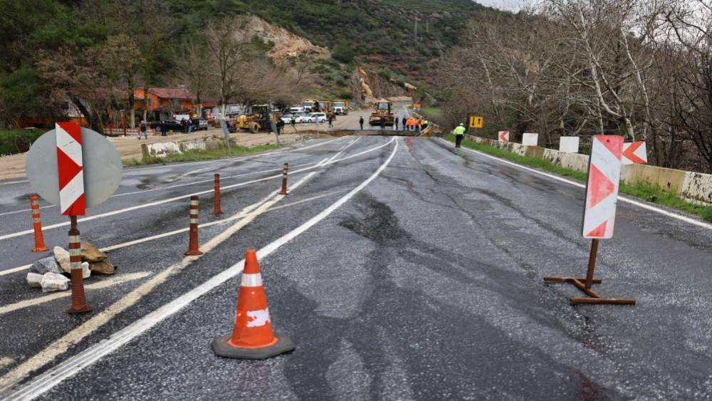 Aydın sınırında çöken yol ulaşıma kapandı