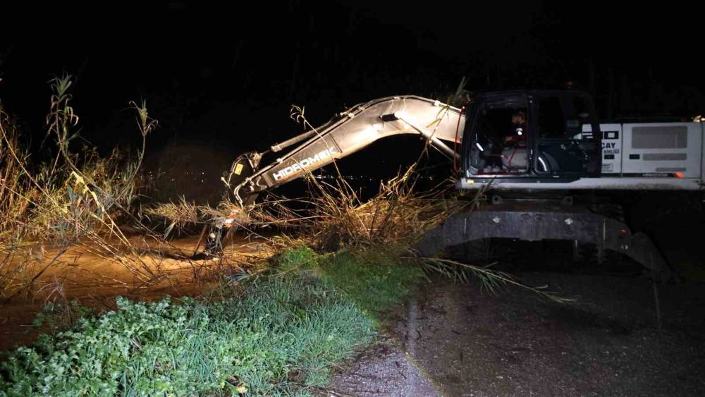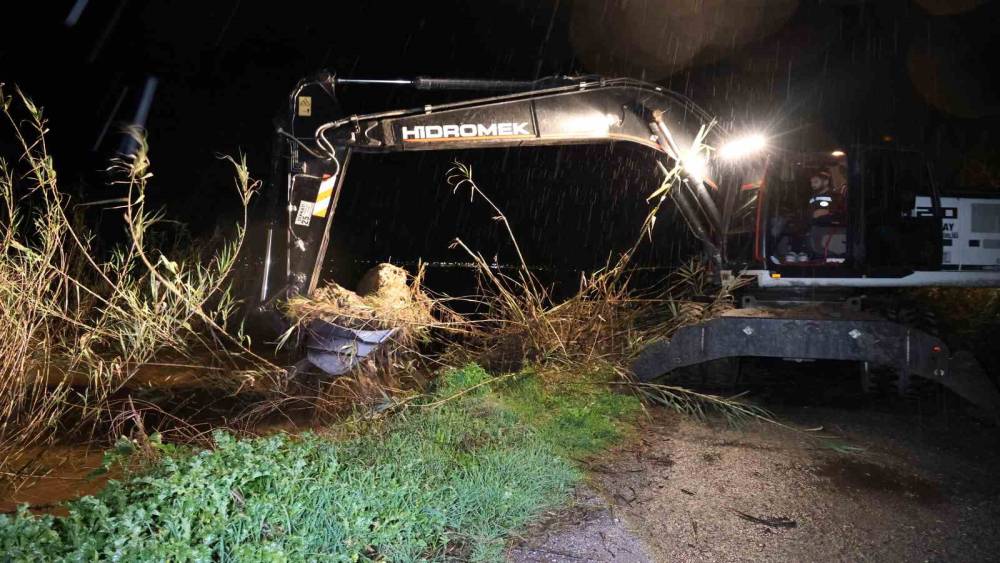Meteoroloji’nin akşam saatlerinden itibaren etkili yağış uyarısının ardından Aydın’da adeta bardaktan boşalırcasına yağmur yağmaya başladı. Özellikle Aydın’ın kuzeyinde dağlarda yaşanan şiddetli yağışla birlikte, Yukarı, Orta ve Aşağı Kayacık köylerinden akan derelerin toplandığı Emirdoğan Çayı’nın debisi bir anda yükseldi. Çayın Büyük Menderes Nehri ile buluştuğu noktada taşkın başladığını gören Umurlu Küme Evler bölgesindeki vatandaşlar, 112 Acil Çağrı Merkezi’ni arayarak yardım istedi. Kısa sürede bölgeye sevk edilen ekipler, taşkın suları ev ve hayvan besihanelerine ulaşmadan dere yatağını temizleyip set oluşturdu.