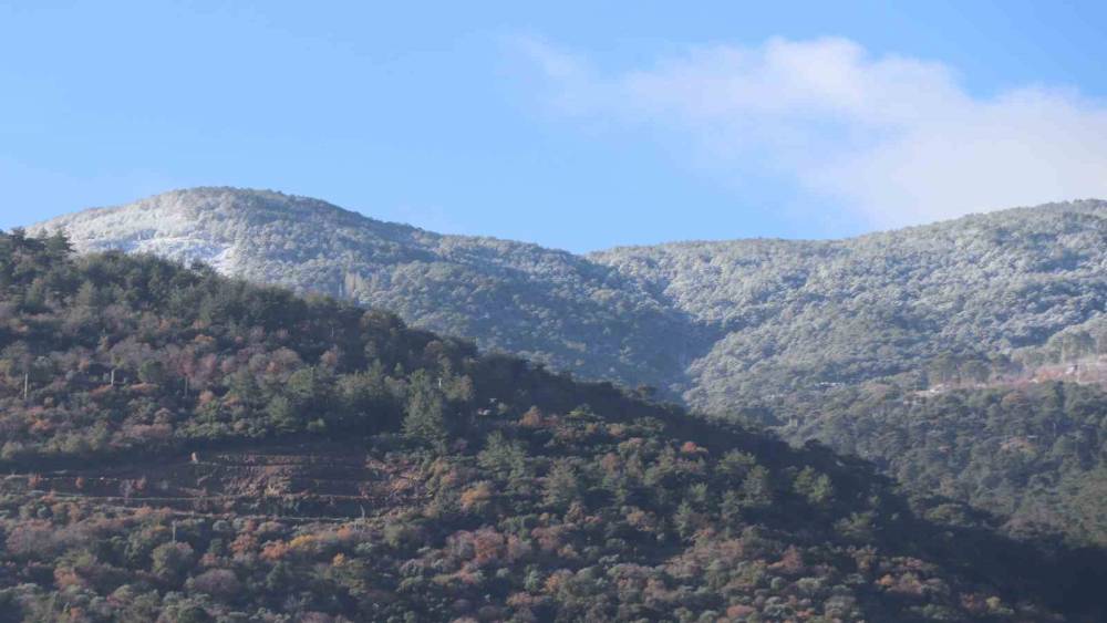 Aydın’da dün etkili olan sağanak yağışlı hava ile birlikte yüksek kesimlerde kar yağışı dağları beyaza bürüdü.