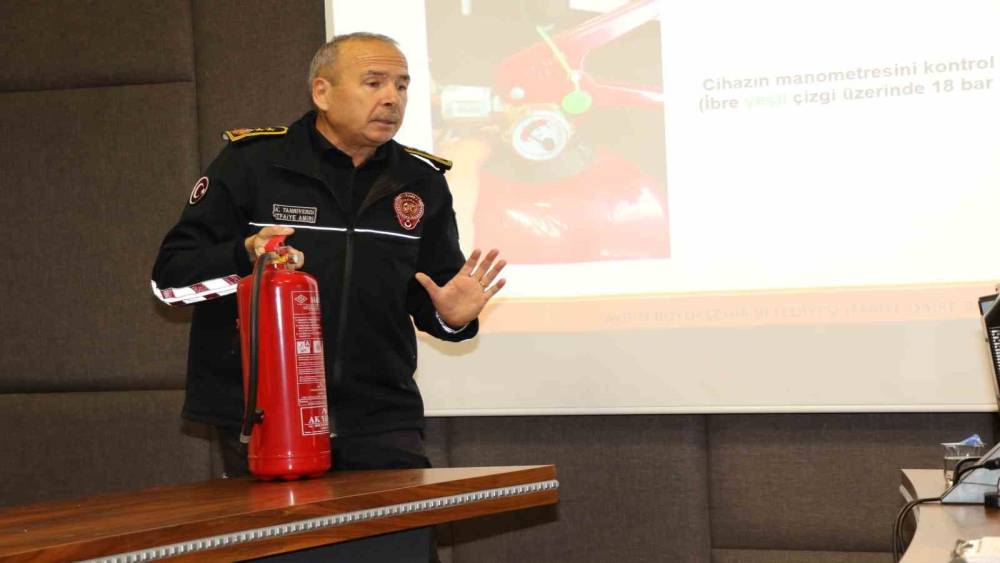 Aydın Ticaret Odası (AYTO) personeline muhtemel yangınlara karşı alınacak önlemler ve yangın anında yapılması gerekenler hakkında temel yangın eğitimi verildi.