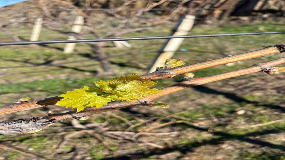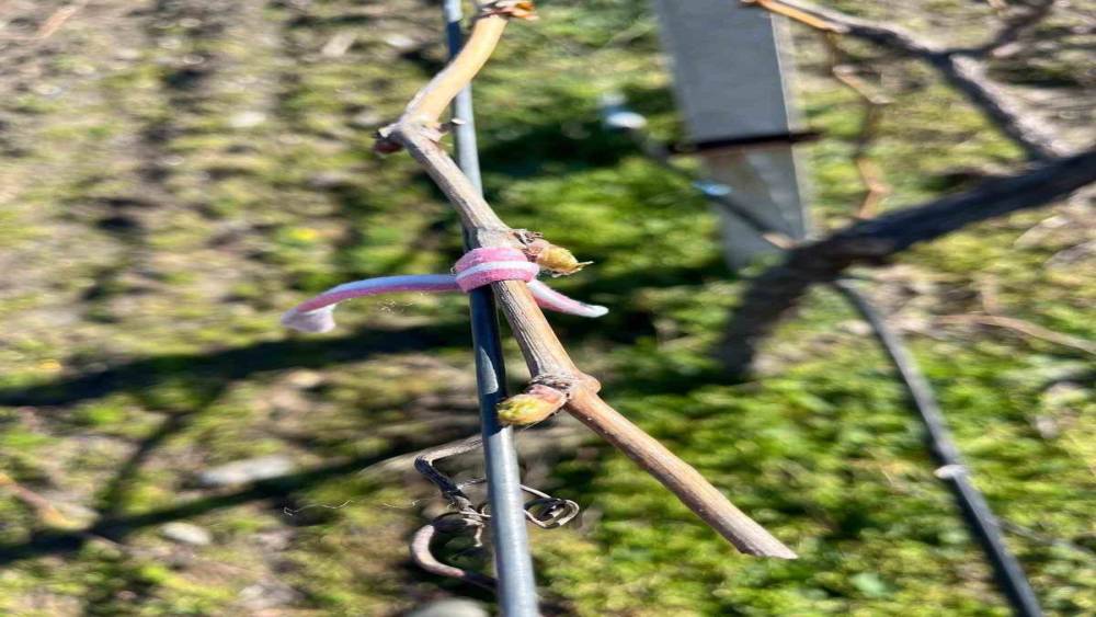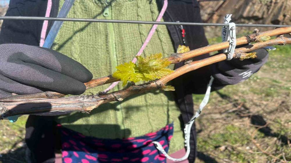 Sarıgöl’ün Tırazlar Mahallesi’nde 25 dekarlık erkenci Süperyol üzüm bağı bulunan üretici Aytaç Ünlükoç, çubuk bağlama çalışması yaptığı sırada bağ çubuklarındaki gözlerin patladığını ve yaprakların belirgin şekilde ortaya çıktığını fark etti.