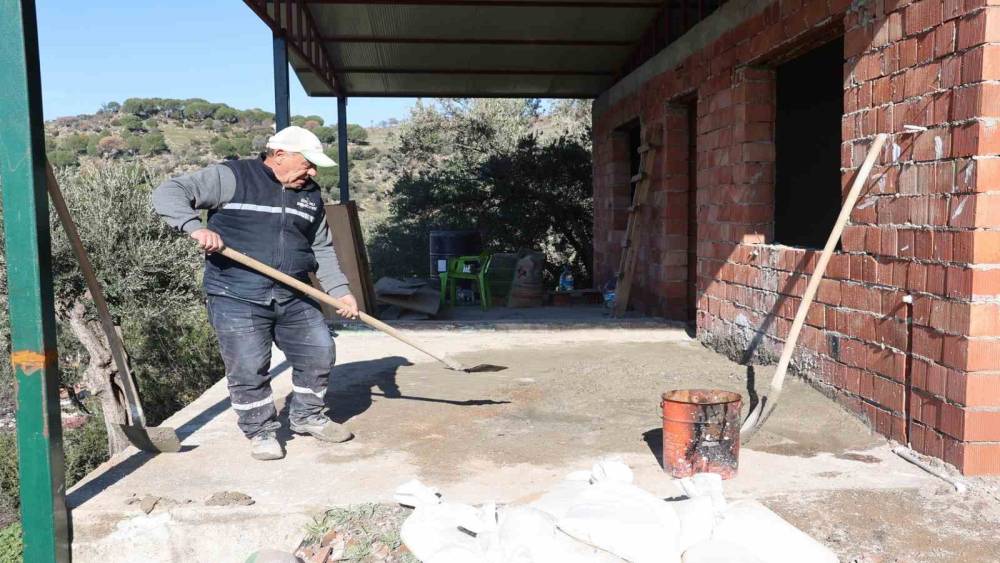 Geçtiğimiz aylarda çıkan yangında zarar gören Kızılkaya Mahallesi’ndeki ev, Koçarlı Belediyesi’nin girişimleriyle yeniden inşa ediliyor.