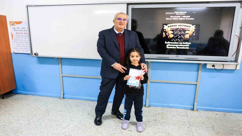 Sınıfları ziyaret ederek öğrencilerle yakından ilgilenen Başkan Arslan, öğrencilere karnelerini takdim etti ve başarılarından dolayı tebrik etti. Öğrencilerle sohbet eden Başkan Arslan, eğitimin ve emeğin önemine dikkat çekerek tüm öğrencilere başarılarının devamını diledi.