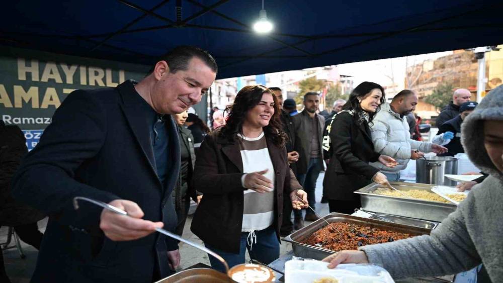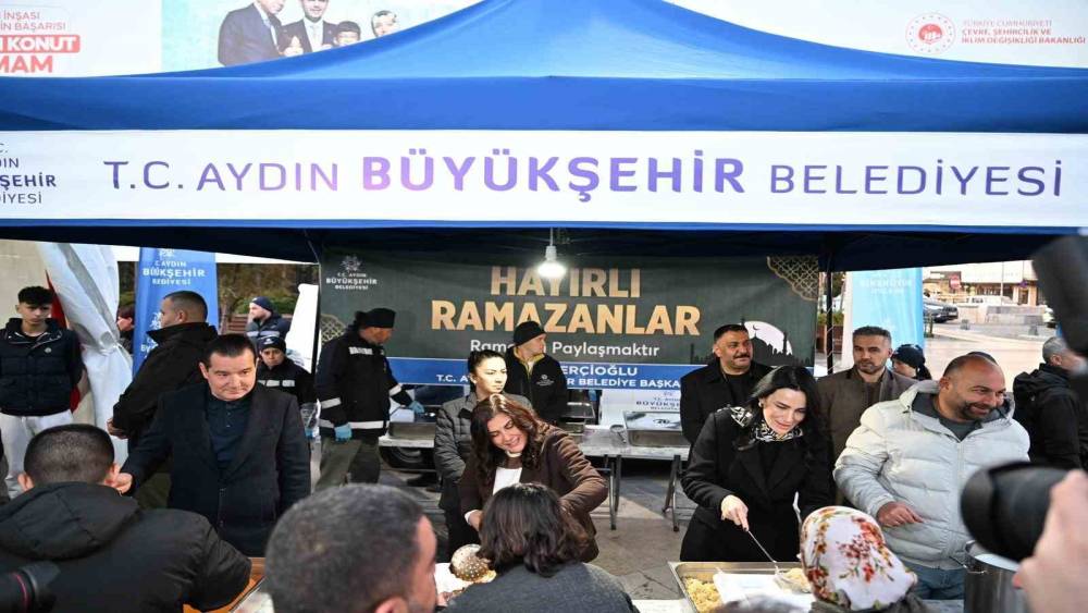 Aydın Büyükşehir Belediye Başkanı Özlem Çerçioğlu, Atatürk Kent Meydanı’nda kurulan iftar sofrasında vatandaşlarla bir araya geldi.