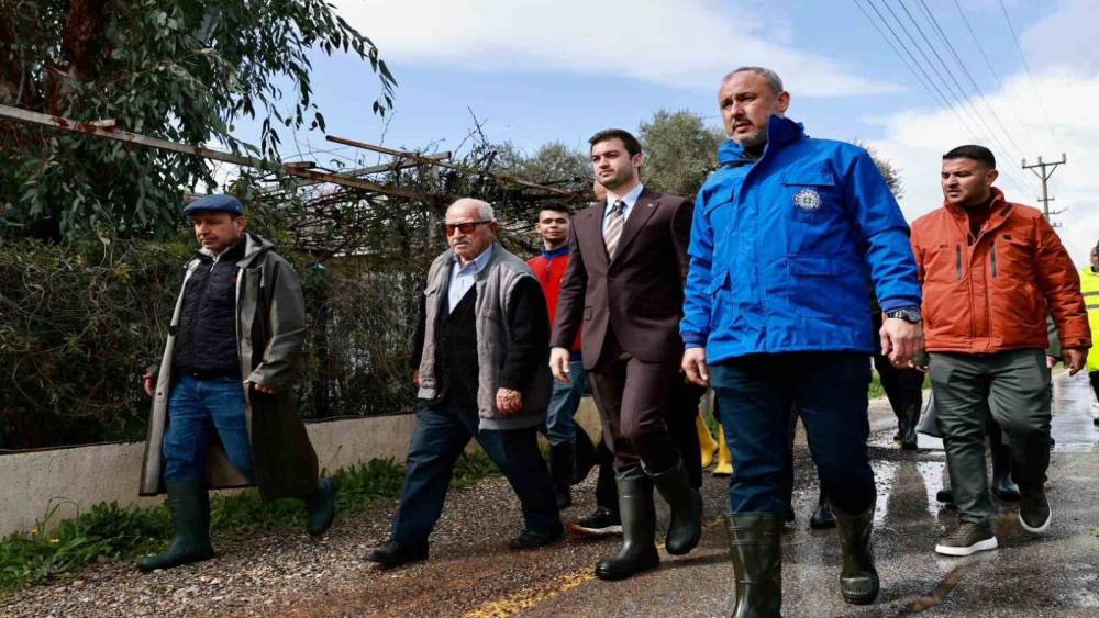 Taşkınların yaşandığı Kızılağaç Mahallesi’ne ekipler hızla sevk edilirken, Bodrum Belediye Başkanı Tamer Mandalinci de bölgeye giderek incelemelerde bulundu. Vatandaşlarla bir araya gelen Başkan Mandalinci, taşkından etkilenen alanlarda yapılması gereken çalışmaları ilgili başkan yardımcıları ve birim müdürleriyle yerinde değerlendirdi. Başkan Mandalinci’nin Kızılağaç ziyaretine Cumhuriyet Halk Partisi Bodrum İlçe Başkanı Tuna Işın, belediye başkan yardımcıları, meclis üyeleri ve birim müdürlerinin yanı sıra Muğla Büyükşehir Belediyesi ile MUSKİ yetkilileri, Bodrum Muhtarlar Birliği Derneği Başkanı Ahmet Cemil Gündüz ve Kızılağaç Mahalle Muhtarı Mehmet Karaca eşlik etti. Mahalle Muhtarı Mehmet Karaca’dan yaşanan taşkınlara ilişkin bilgi alan Başkan Mandalinci, bölge genelinde kapsamlı incelemelerde bulundu.