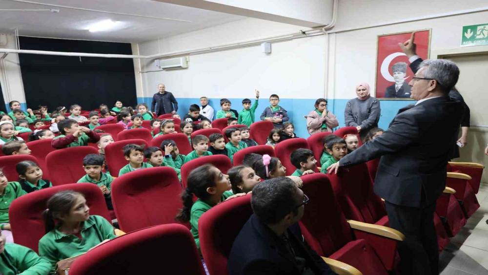 Aydın’ın Nazilli ilçesinde ilkokul öğrencileri ile bir araya gelen Belediye Başkanı Dr. Ertuğrul Tetik, çocuklara belediyeciliği anlattı.
