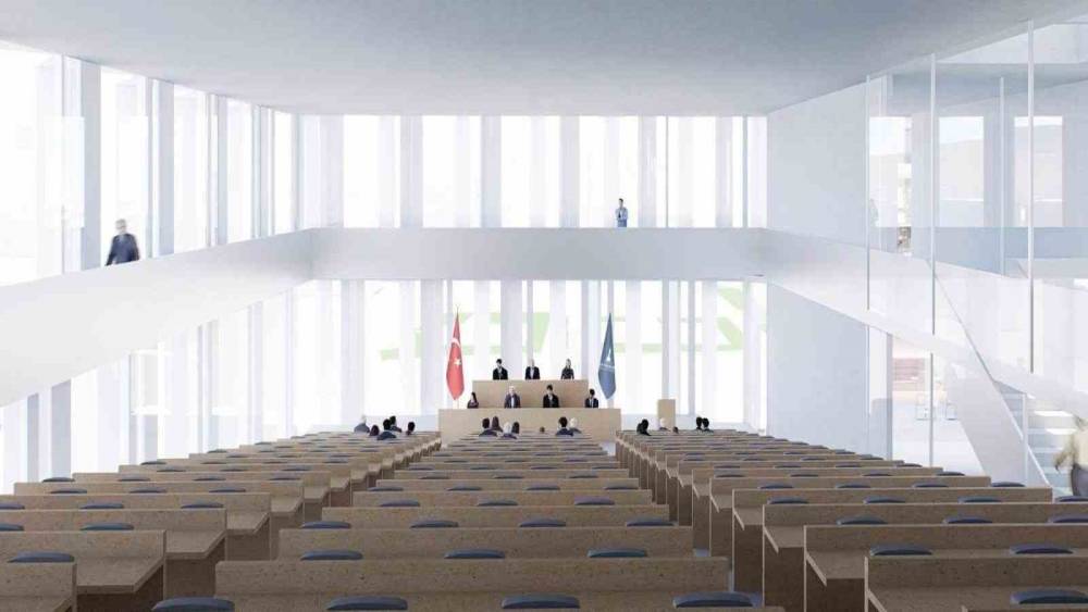 Proje, betonarme ve çelik taşıyıcı sistemle inşa edilecek. Zemin katta oluşturulan ve birinci katın batı cephesinde devam ettirilen kamusal mekânlar sayesinde yapının yalnızca bir idari merkez değil, aynı zamanda kentle bütünleşen bir sosyal alan olması amaçlanıyor. Yapının merkezinde yer alan avlu ve çatıya entegre edilen açılır sistemler ile doğal havalandırma desteklenerek enerji verimliliğine katkı sağlanması ve karbon salınımının azaltılması planlanıyor. Diğer yandan; yağmur suyu toplama ve gri su kullanım sistemleriyle de su kaynaklarının verimli kullanılması hedefleniyor. Cephede kullanılacak özel yansıtıcı camlar sayesinde iç mekânda ısı yükü minimize edilirken, doğal aydınlatma, akustik konfor ve hava sirkülasyonu artırılarak çevre dostu, sürdürülebilir bir belediye binası tasarlanıyor.
