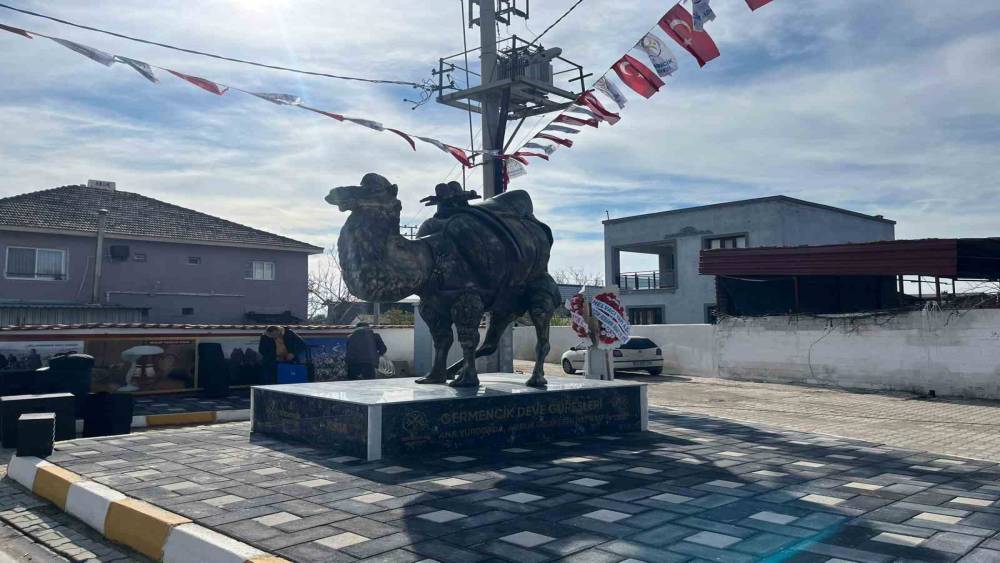 Aydın’ın Germencik ilçesinde develeriyle meşhur Turanlar Mahallesi girişine yaptırılan deve heykeli, davul ve zurna eşliğinde düzenlenen törenle açıldı. Açılışa getirilen develer ise törene renk kattı.Germencik Belediye Başkanı Burak Zencirci’nin, seçim öncesi mahalle sakinlerine verdiği söz doğrultusunda yaptırılan heykelin açılışına; Başkan Zencirci’nin yanı sıra Turanlar Mahalle Muhtarı Himmet İzmir, Devecilik Kültürü ve Deve Güreşleri Federasyonu Başkanı Akkın Pazarlıoğlu, Yörük dernekleri başkanları, meclis üyeleri, muhtarlar ve çok sayıda mahalle sakini katıldı.Törende konuşan Turanlar Mahalle Muhtarı Himmet İzmir devecilik kültürünün Turanlar Mahallesi’nde yoğun olarak yaşatıldığını belirterek, "Deve sayısının en fazla Turanlar Mahallemizde olmasından dolayı seçim öncesinde Belediye Başkanımız Burak Zencirci’den rica ettik. ‘Dedik devecilik kültürünü Turanlar yaşatıyor. Bunun eziyetini Turanlar çekiyorsa neden bir deve heykelimiz olmasın’ dedik. Bu dünya bize geçmişimizden bize miras kalmadı. Gelecek nesillere aktarılmak için bir emanet. Bizler büyüklerimizden miras aldığımız bu devecilik kültürünü bizden sonraki nesillere devredebilmek için böyle bir talepte bulunduk. Germencik Belediye Başkanımıza çok teşekkür ederiz. Zaman saman sosyal medyada eleştiriler var. Diyorlar ki ‘Belediyenin ve muhtarlığın deve heykelinden başka yapacak bir şeyi yok mu?’ elbette var. Ama bizim bir kültürümüz var. müzisyenleriyle ünlü Yeni Mahallede mesela davul zurna heykeli var. Çünkü oranın simgesi o. Denizli’nin horozu meşhur. Her yerde horuz heykeli var. Kardeşim bizim Turanlar’da deve heykeli olunca niye kursağınız kaldırmıyor. Niye eleştiriyorsunuz. Bu da Turanlar’ın bir sembolü. Eleştirseniz de dikeceğiz, eleştirmeseniz de dikeceğiz" dedi.Germencik Belediye Başkanı Burak Zencirci ise, yapılan çalışmanın yalnızca bir heykel değil, köklü bir kültürün temsili olduğunu vurgulayarak, "Bu heykel bir sanat eseri olmanın ötesinde, 100 yıllık bir Yörük geleneğinin simgesidir. Germencik, Türkiye’de deve güreşlerinin başladığı yer olarak bilinir. 1927 yılına ait deve güreşi fotoğrafları elimizde mevcut. Bu kültürü yaşatmak bizim görevimiz. Turanlar’a hayırlı olsun" ifadelerini kullandı.Konuşmaların ardından protokol tarafından heykelin üzerindeki örtü açıldı. Artık Turanlar Mahallesine gidenleri deve heykeli karşılayacak.