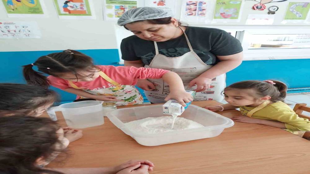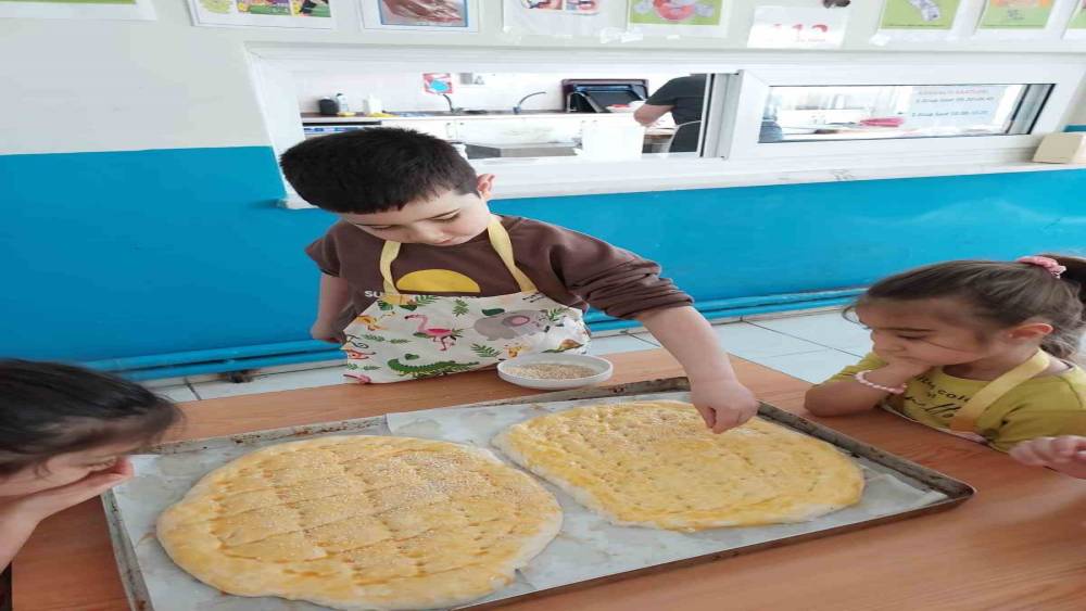 Öğretmenler eşliğinde gerçekleştirilen etkinlikte minik öğrenciler, Ramazan ayının geleneksel lezzetlerinden olan pidenin yapım aşamalarını uygulamalı olarak öğrendi. Hamur yoğurma, şekil verme ve üzerine susam serpmek gibi aşamalara katılan öğrenciler hem eğlendi hem de keyifli vakit geçirdi. Etkinlik kapsamında çocuklara Ramazan ayının paylaşma ve dayanışma ayı olduğu anlatılırken, geleneksel değerlerin küçük yaşta benimsetilmesinin önemine dikkat çekildi. Öğrencilerin büyük bir heyecanla hazırladığı pideler, pişirme aşamasının ardından afiyetle tüketildi.