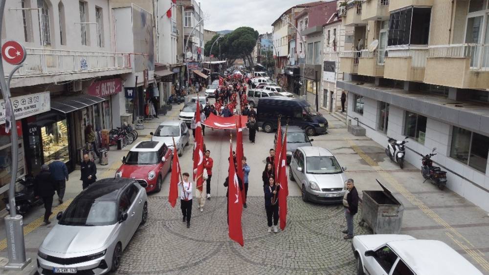 Bayındır’da öğrencilerden bayrak yürüyüşü