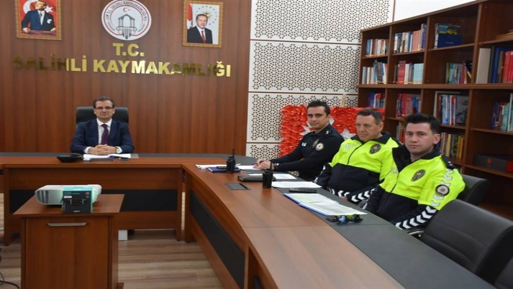Manisa’nın Salihli ilçesinde yaklaşan bayram öncesinde alınacak trafik ve asayiş tedbirlerinin değerlendirilmesi amacıyla toplantı düzenlendi. Kaymakamlık Toplantı Salonu’nda gerçekleştirilen toplantıya, Kaymakam Ali Güldoğan başkanlık etti.