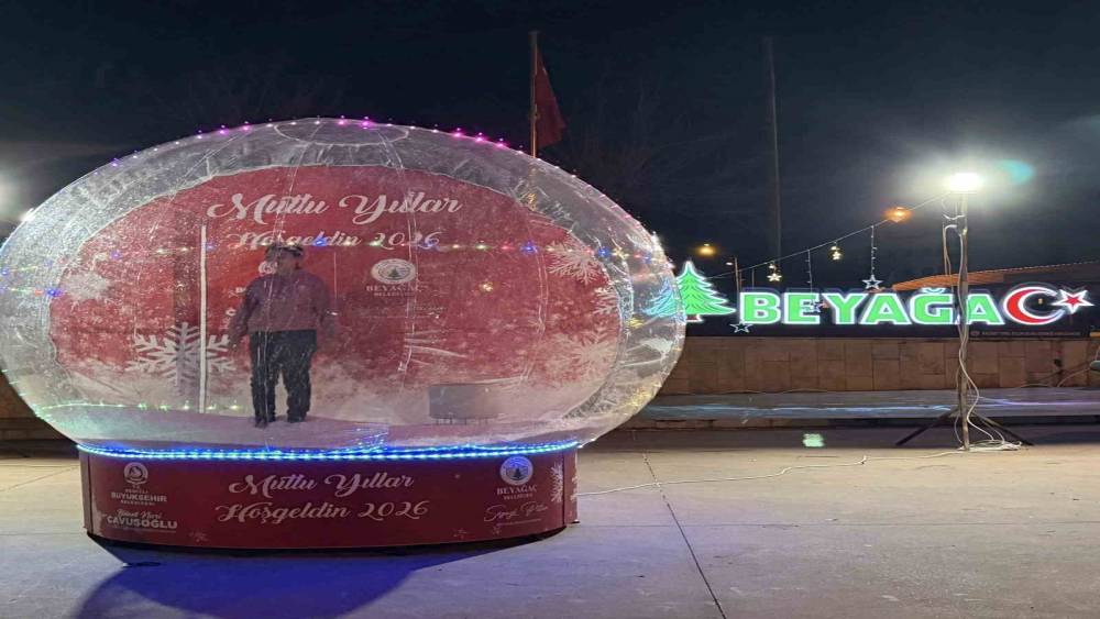 Beyağaç Belediyesi vatandaşların yılbaşı hatıralarını renkli şekilde ölümsüzleştirmeleri için Beyağaç Çarşı Meydanına dev kar küresi yerleştirdi.Denizli Büyükşehir Belediyesi ve Beyağaç Belediyesinin ortak çalışmasıyla Beyağaç Çarşı Meydanına dev kar küresi yerleştirildi. Dev kar küresinin içine girerek fotoğraf çekilen vatandaşlar yılbaşı hatıralarını renkli görüntülerle ölümsüzleştirdi. Dev kar küresi Beyağaçlı vatandaşlar tarafından yoğun ilgi görüyor.Tüm vatandaşların 2026 yılının sağlık ve mutlulukla geçmesini temenni eden Beyağaç Belediye Başkanı Sezayi Pütün yayımladığı yeni yıl mesajında, "Beyağaç meydanındaki kar küremiz misafirlerini ağırlıyor. Yeni yıla Beyağaç’tan sevgiyle, umutla bakıyoruz. İlçemize her zaman destek olan, iyi günde de zor günde de yanımızda duran Denizli Büyükşehir Belediye Başkanımız Bülent Nuri Çavuşoğlu’na hemşehrilerim adına gönülden teşekkür ediyorum. 2026’nın; sağlık, huzur ve yüzümüzü güldüren güzel anlarla dolu bir yıl olmasını diliyorum" ifadelerini kullandı.