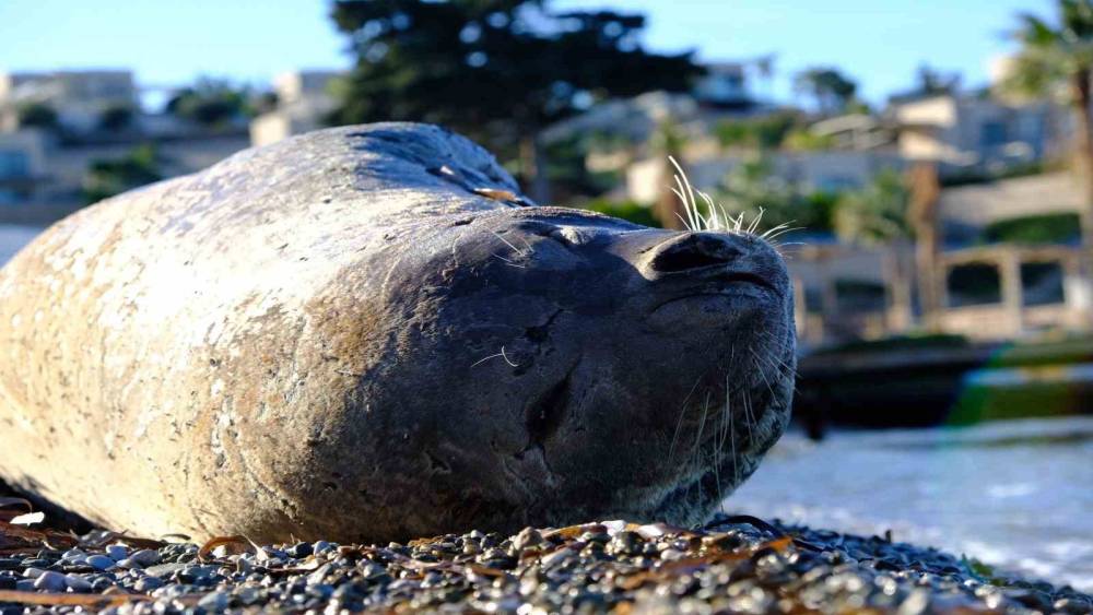 Muğla’nın Bodrum ilçesinde bulunan Koyunbaba sahilinde kıyıya çıkan bir Akdeniz foku, vatandaşların ilgi odağı oldu.