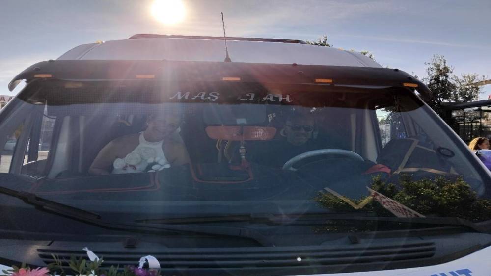 Yıllardır aynı dolmuşla çalıştıklarını söyleyen Umut ve Seminay Akkaya, "Bu araç bizim için sadece bir iş aracı değil, hayatımızın bir parçası. En mutlu günümüzde de onunla yola çıkmak istedik" dedi.