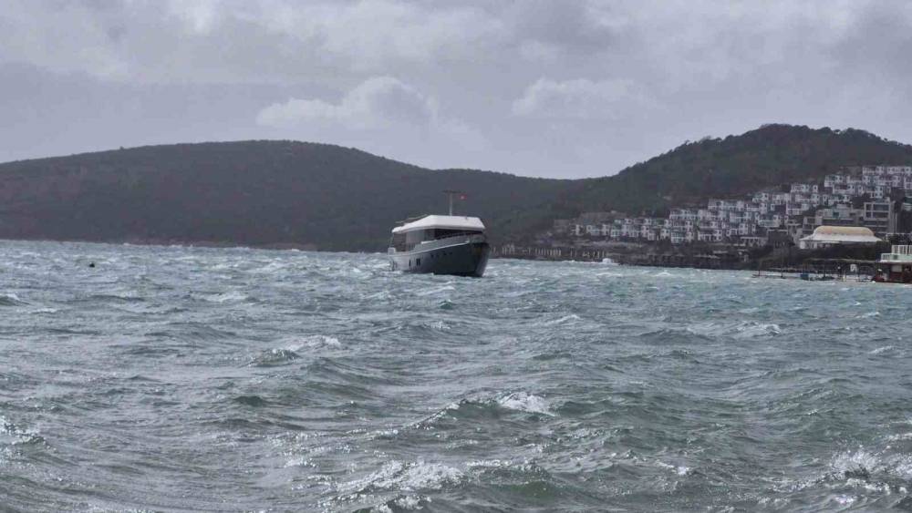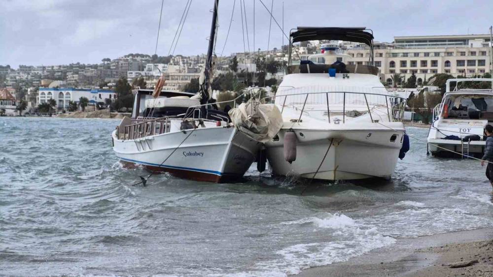 Meteoroloji’nin fırtına uyarısında bulunduğu Muğla’nın Bodrum ilçesinde beklenen fırtına sabah saatlerinde başladı. Fırtına sebebiyle Gümbet Koyu’nda demirli tekneler kıyıya sürüklendi. İlk olarak bir motoryat ile katamaran tipi yelkenli kıyıya sürüklendi. Tekneler, daha fazla hasar almaması için karaya bağlanarak sabitlendi.
