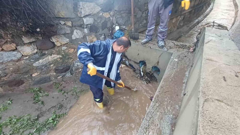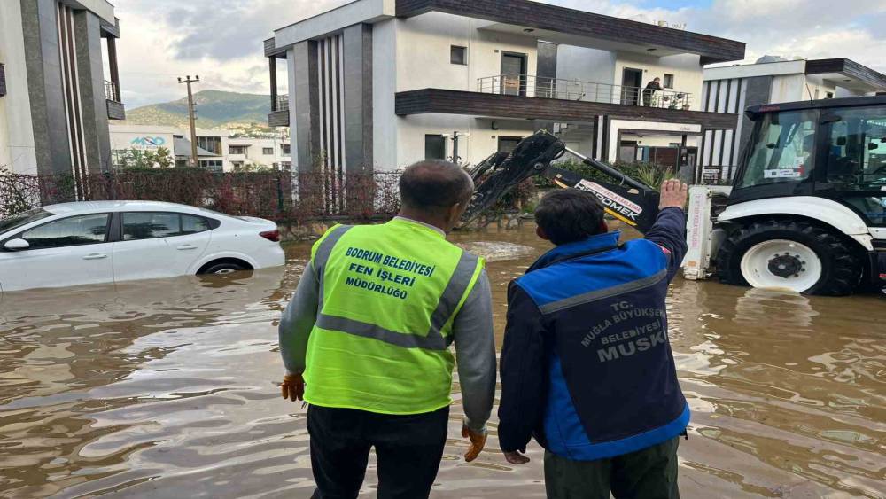 Konu ile ilgili Bodrum Belediyesi’nden yapılan açıklamada "25 Aralık 2025 tarihinde sabaha karşı saat 03.00 sularında, herhangi bir meteorolojik uyarı bulunmamasına rağmen Yarımadamız genelinde, özellikle Bitez, Gümbet ve Konacık-Çırkan bölgelerinde etkili olan ani ve kuvvetli sağanak yağış neticesinde metrekareye kısa sürede yaklaşık 44 kilogram yağış düşmüştür. Yağışın şiddetiyle Konacık D-330 Karayolu üzerinde su birikintileri oluşmuştur. Bölgedeki yağmur drenaj hatlarımız çalışır durumda olmasına rağmen, dere bağlantı kısmındaki kesitlerin darlığı suyun hızlı tahliyesini geciktirmiş, ekiplerimizin yoğun çalışmasıyla biriken sular tahliye edilerek yol yeniden trafiğe açılmıştır. Yağışa bağlı olarak Çırkan Mahallesi Amiral Caddesi’ndeki bir binanın temelinde kayma riski tespit edildiğinden, söz konusu bina ve bitişiğindeki yapıda yaşayan toplam 15 vatandaşımız tedbir amaçlı tahliye edilmiştir. Sağlık durumları iyi olan vatandaşlarımız için AFAD ve Çevre, Şehircilik ve İklim Değişikliği İl Müdürlüğü ile koordineli şekilde teknik incelemeler başlatılmıştır. Bitez bölgesinde ise Söğütlü Deresi istinat duvarının çökmesi sonucu, kapalı durumda olan bir otelin zemin katı ve dere yatağındaki bir Kızılay aracı taşkından etkilenmiştir. Yarımada genelinde su baskını yaşanan 14 konut ve 2 otelde Muğla Büyükşehir Belediyesi İtfaiyesi, MUSKİ ve Bodrum Belediyesi ekiplerimiz su tahliye ve temizlik çalışmalarını aralıksız sürdürmektedir. Tüm vatandaşlarımıza geçmiş olsun dileklerimizle" ifadeleri yer aldı.