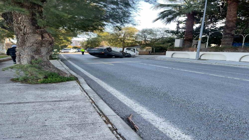 Bodrum’un Yalıkavak Mahallesi’nde sabah saatlerinde meydana gelen trafik kazasında, kontrolden çıkan otomobil takla atarak ters dönerken, sürücü kazayı yara almadan atlattı.