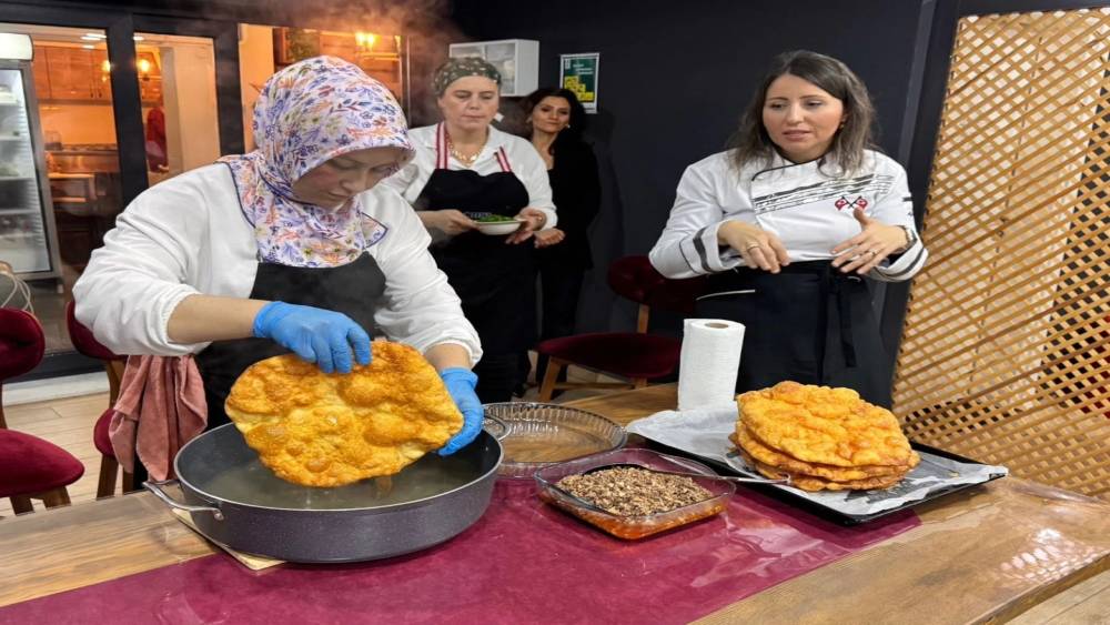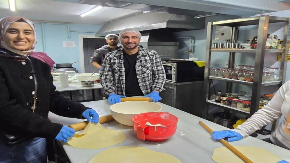 Aydın’da görev yapan öğretmenler bu kez öğreten değil öğrenen olurken, önlüğü giyen öğretmenler Aydın’ın önemli lezzetlerinden Paşa Böreği’ni yapmayı öğrendi.