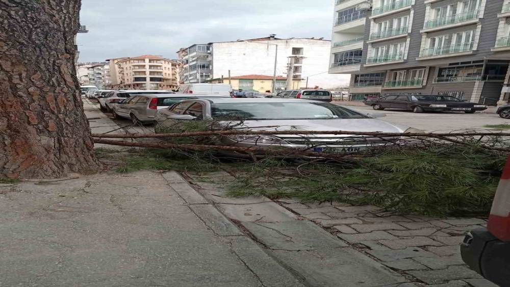 Fırtına, Yeni Mahalle ile Cumhuriyet Mahallesi arasındaki yol üzerinde bulunan çam ağaçlarının dallarını da kopardı. Yola savrulan dallar, park halindeki ve seyir halindeki bazı araçlarda maddi hasara neden oldu.