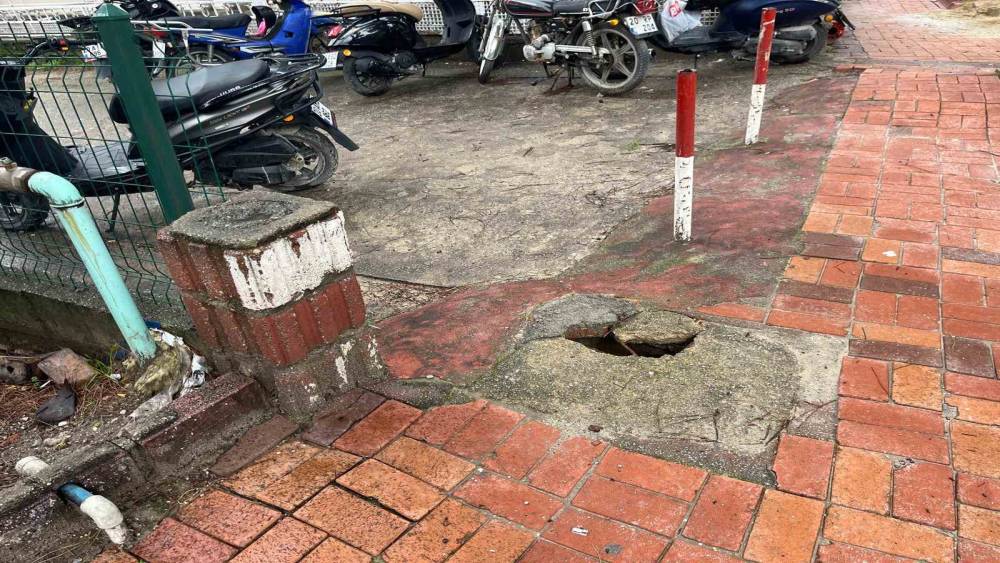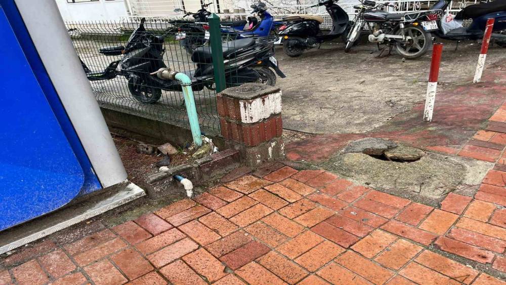 Buldan’da ATM önündeki çukur tehlike saçıyor