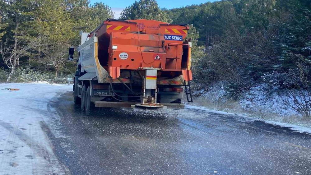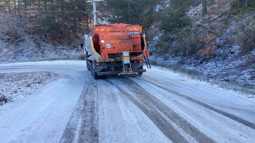 Aydın’ın yüksek kesimlerinde kar yağışı yaşanmasının ardından çalışmalarına başlayan Büyükşehir Belediyesi ekipleri, buzlanmayı önlemek amacıyla yollarda tuz serimi gerçekleştirdi.