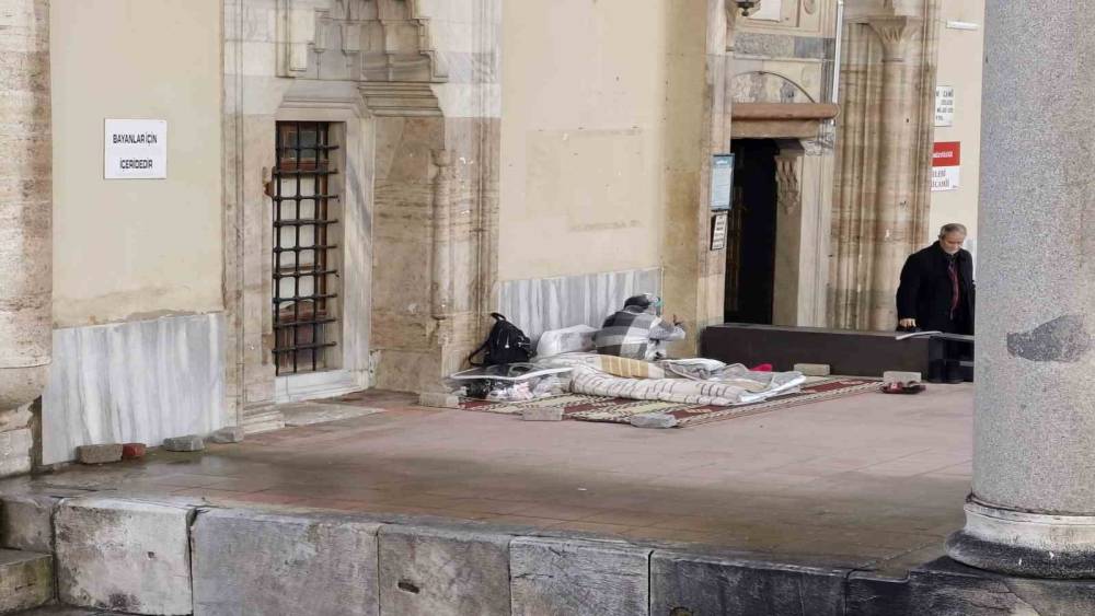 Sosyal Hizmetler Müdürlüğü’nün yardımlarını kabul etmeyerek cami avlusunda yaşamaya devam eden kadının hem kendine hem de cami cemaatine sıkıntı vermeye başladığını belirten vatandaşlar, "Yaklaşık 1 ay önce buraya geldi. Gece hava buz gibiyken bile burada yatıp kalkıyor. Durumunu görünce üzüldük, ilgili yerlere haber ettik. Sosyal Hizmetler İl Müdürlüğü ekipleri sıcak bir yer sunmak istedi. Kadın kabul etmedi. Şimdi burada yatıp kalkıyor. Namaz kılınırken bile herkesin duyacağı şekilde müzik dinliyor. Ve caminin dış bölümündeki bazı alanlar tuvalet gibi kullanıldığı için ciddi sıkıntı yaşanmaya başladı" diye konuştu.
