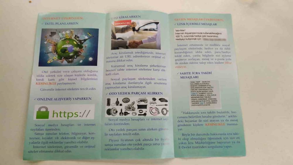 DENİZLİ (İHA) – Denizli’de Buldan İlçe Emniyet Müdürlüğü tarafından kahvehanelerde bilgilendirme yapılara, vatandaşlar dolandırıcılık olaylarına karşı uyarıldı.Buldan İlçe Emniyet Müdürlüğü ekipleri, Buldan’daki kahvehanelerde vatandaşlara çay ısmarladı, dağıttığı broşürlerle son günlerde artan dolandırıcılıklara karşı uyarıda bulundu. Kendilerini polis, jandarma, hakim, savcı olarak tanıtan dolandırıcılık yapan şahısların telefonla, vatandaşlardan para ve banka hesap bilgilerini istediklerini belirten Buldan İlçe Emniyet Müdürlüğü ekipleri kahvehanelerde bulunan vatandaşlara çay ısmarlayarak vatandaşa uyarıda bulundu.