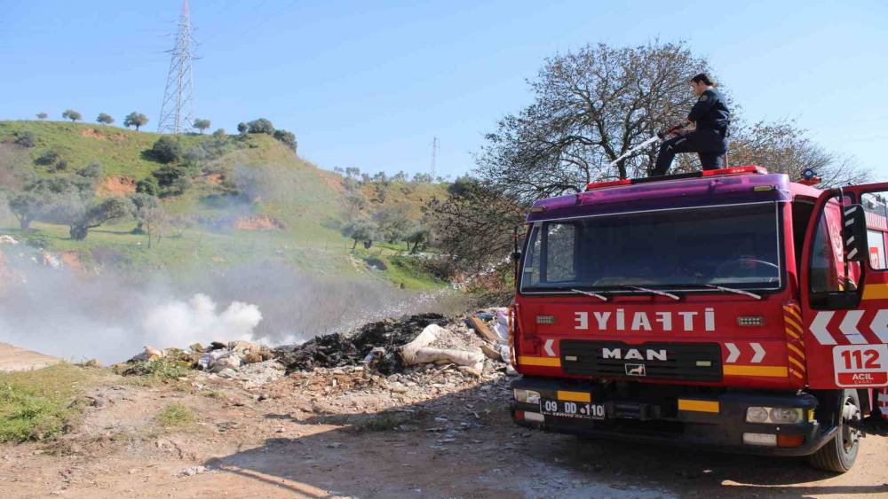 Aydın’ın Efeler ilçesinde çöplük alanda çıkan yangın itfaiye ekiplerini harekete geçirirken, mahalle sakinleri sürekli benzer olayın yaşandığını ve dumandan dolayı rahatsızlık yaşadıklarını ifade ederek bölgenin temizlenmesini istedi.