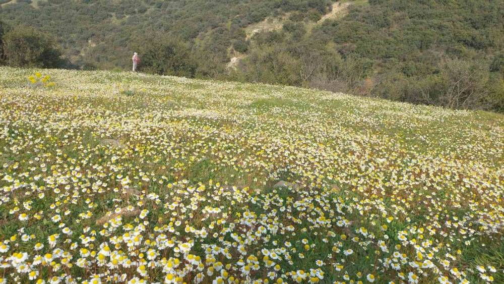 Manisa’nın Sarıgöl ilçesinde şubat ayında yağan bol yağışların ardından dağ yamaçlarında papatya ve çeşitli kır çiçekleri yoğun şekilde açtı. Doğadaki bu bolluk, arıcılıkla uğraşan üreticilerin yüzünü güldürdü.