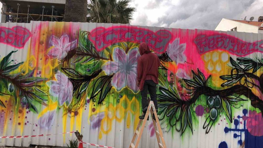 Datça’da yapımı süren okulun duvarları Badem Çiçeği Festivali’ne hazırlandı