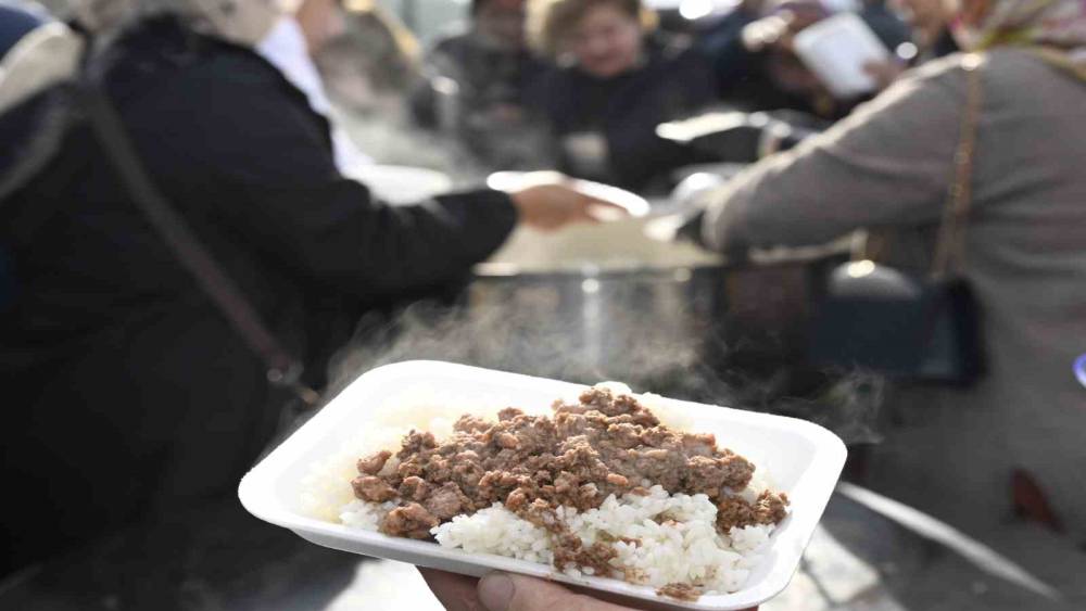 Hazırlanan 8 kazan kavurma ve pilav, ilçe pazaryerinde kurulan stantlarda yaklaşık 8 bin vatandaşa dağıtıldı.
