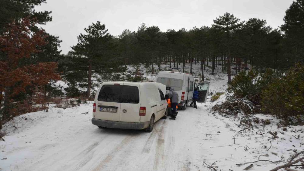Demirci’de kar nedeniyle yolda mahsur kalan 3 avcı kurtarıldı