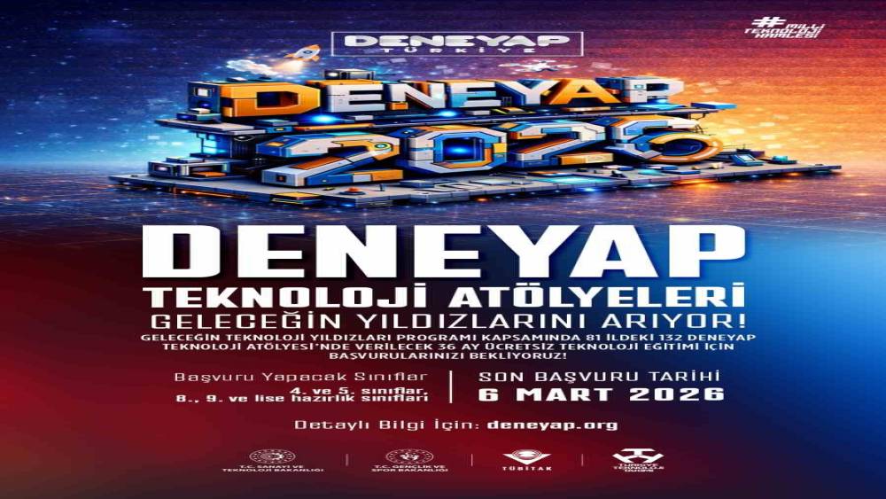 Türkiye genelinde 81 ilde 132 atölyede yürütülen DENEYAP Teknoloji Atölyeleri programının 2026 Öğrenci Seçme Süreci başladı. Başvurular 6 Mart 2026 tarihine kadar yapılabilecek.Sanayi ve Teknoloji Bakanlığı, Gençlik ve Spor Bakanlığı, TÜBİTAK ve Türkiye Teknoloji Takımı Vakfı (T3 Vakfı) iş birliğiyle yürütülen DENEYAP Teknoloji Atölyeleri kapsamında 2026 yılı Öğrenci Seçme Süreci başvuruları başladı. Program, Türkiye’nin 81 ilinde bulunan 132 atölyede uygulanıyor. 36 ay sürecek eğitim programı kapsamında öğrenciler; tasarım ve üretim, robotik ve kodlama, elektronik programlama, yapay zekâ, siber güvenlik, enerji teknolojileri ve havacılık-uzay gibi çeşitli alanlarda ücretsiz eğitim alacak. 2025-2026 eğitim-öğretim yılında 4 ve 5’inci sınıf, 8 ve 9’uncu sınıf ile lise hazırlık sınıfında öğrenim gören öğrenciler başvuru yapabilecek. Üç aşamalı öğrenci seçme süreci; e-sınav, çevrim içi eğitim ve görev tamamlama süreci ile uygulama sınavından oluşuyor. Süreci başarıyla tamamlayan öğrenciler DENEYAP Teknoloji Atölyeleri’nde eğitim almaya hak kazanacak.DENEYAP Teknoloji Atölyeleri, kurulduğu günden bu yana 591 bin 977 başvuru aldı. Program kapsamında 44 bin 615 öğrenci eğitim sürecine dahil olurken, 10 bin 802 öğrenci mezun oldu. 14 bin 151 eğitmen programda görev yaptı. 2024 yılında ise programa 156 bin başvuru gerçekleştirildi. 2026 Öğrenci Seçme Süreci başvuruları çevrim içi olarak alınacak olup, son başvuru tarihi 6 Mart 2026 olarak açıklandı. Başvuru ve süreçle ilgili bilgilere www.deneyap.org adresinden ulaşılabileceği bildirildi.