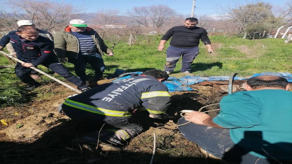 Denizli’de otladığı sırada foseptik çukuruna düşen inek, vatandaşların ihbarı üzerine olay yerine gelen itfaiye ekiplerinin çalışması sonucu bulunduğu yerden çıkarıldı.Olay, Sarayköy ilçesi Hasköy Mahallesi’nde meydana geldi. Edinilen bilgilere göre, arazide otlayan bir inek, üzeri açık olduğu öğrenilen foseptik çukuruna düştü. Hayvanın sesini duyan çevredeki vatandaşlar kendi imkanlarıyla ineği kurtarmaya çalıştı ancak başarılı olamayınca durumu itfaiye ekiplerine bildirdi. İhbar üzerine olay yerine gelen ekipler, yaptıkları çalışma sonucu ineği bulunduğu çukurdan halatlar yardımıyla çıkardı. Sağlık durumu kontrol edilen hayvanın genel durumunun iyi olduğu öğrenildi.