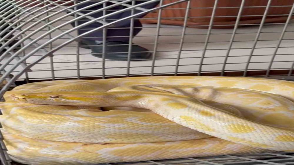Denizli’de bir alışveriş merkezinde düzenlenen gösteride kullanılan Albino Burma Pitonu, yapılan denetimlerde gerekli izin belgelerinin bulunmadığının tespit edilmesi üzerine ekipler tarafından el konularak koruma altına alındı.