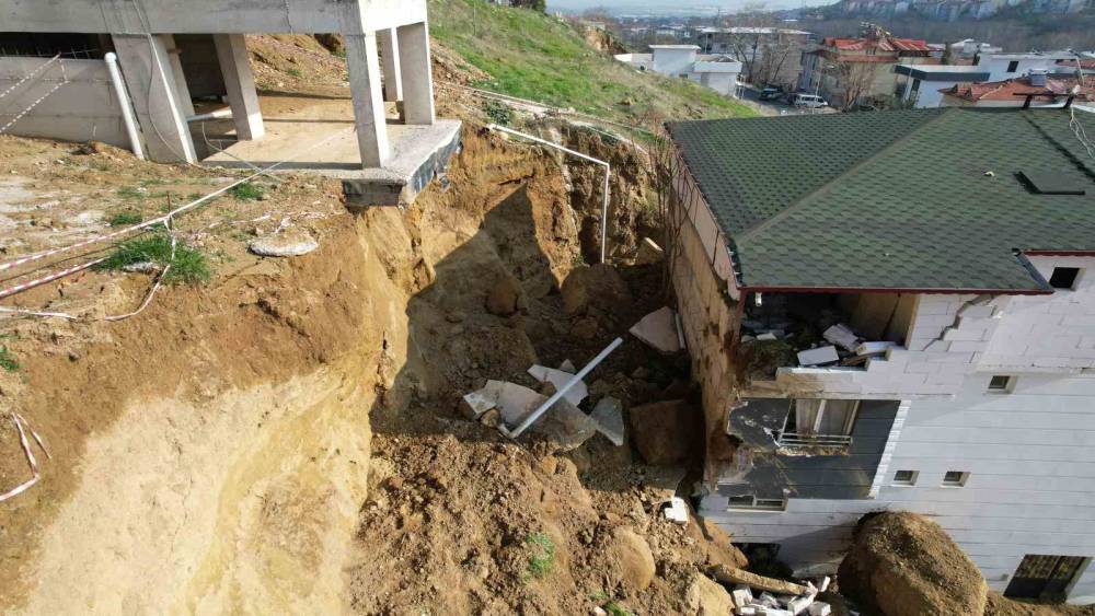 Toprak kayması ve kaya kopmasının yaşandığı o anlar çevredeki bir güvenlik kamerasına yansıdı. Görüntülerde çalışan iş makinesi kazı alanında çalıştığı görülüyor. Bir süre sonra ise kazı yaptığı alandan iş makinesinin uzaklaşmasıyla ortalığın toz altında kaldığı, olayın gerçekleştiği görülüyor.