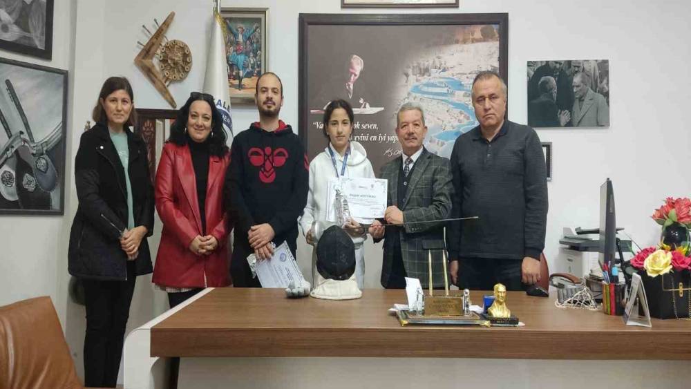 Denizli’de Pamukkale Halk Eğitimi Merkezi Müdürü Cengiz Sarıca, Konya’da düzenlenen Türkiye Kupası’nda U12 Kadın Epe kategorisinde Türkiye 6’ncısı olan sporcu Meryem Koru’yu tebrik ederek başarılarının devamını diledi.Denizli’de Pamukkale Halk Eğitimi Merkezi Müdürlüğü tarafından açılan eskrim kursunda eğitim alan sporcu Meryem Koru, Denzili’yi temsilen katıldığı önemli bir organizasyonda büyük bir başarıya imza attı. 19-27 Aralık 2025 tarihleri arasında Konya’da gerçekleştirilen U10-U12-U14 Epe Türkiye Kupası müsabakalarında, U12 Kadın Epe kategorisinde mücadele eden Meryem Koru, 123 sporcu arasından Türkiye 6’ncısı olarak madalya kazanmayı başardı. Esat Sivri Ortaokulu 6. sınıf öğrencisi olan Meryem Koru, sergilediği üstün performansla hem ailesini hem de Denizli’yi gururlandırdı. Pamukkale Halk Eğitimi Merkezi eskrim eğitmeni Emirhan Kelçeoğlu ile Gençlik ve Spor İl Müdürlüğü eskrim antrenörü Gül Bircan tarafından hazırlanan genç sporcu, kıran kırana geçen müsabakalar sonucunda Türkiye altıncılığı madalyasına uzandı. Pamukkale Halk Eğitimi Merkezi Müdürü Cengiz Sarıca, başarılı sporcu Meryem Koru’yu ve emeği geçen eğitmenlerini makamında kabul ederek başarı ve teşekkür belgesi ile hediye takdim etti. Sarıca, Şubat ayında yapılacak olan Türkiye geneli yarışmalarda da Meryem Koru’ya başarılar diledi.