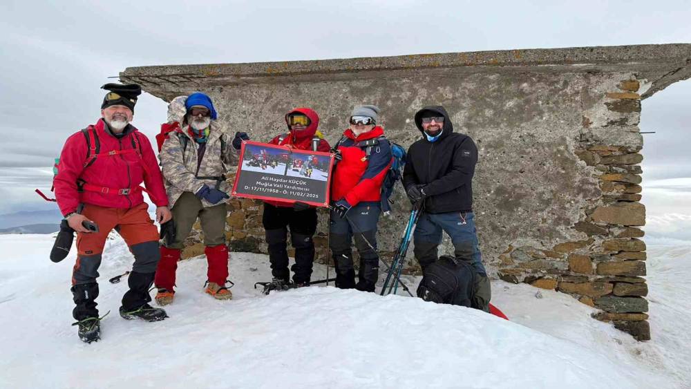 Geçen yıl 11 Şubat’ta vefat eden emekli Muğla Vali Yardımcısı Ali Haydar Küçük’ü anmak için Muğla Doruk Doğa Sporları kulüp sporcusu Fikret İrez, Pakdos Denizli Sporcusu Nurettin Karaduman, Bodrum Zirve Dağcılık Sporcuları Süleyman Çimentepe, Özgür Acar ve Hafize Şahin, 2 bin 50 metre yükseklikteki Köyceğiz Sandras Altınsivri dağının zirvesine tırmandı.