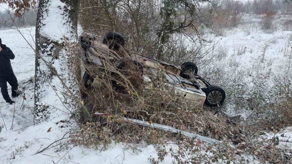 Domaniç’te gizli buzlanma kazaya sebep oldu, minibüs şarampole yuvarlandı