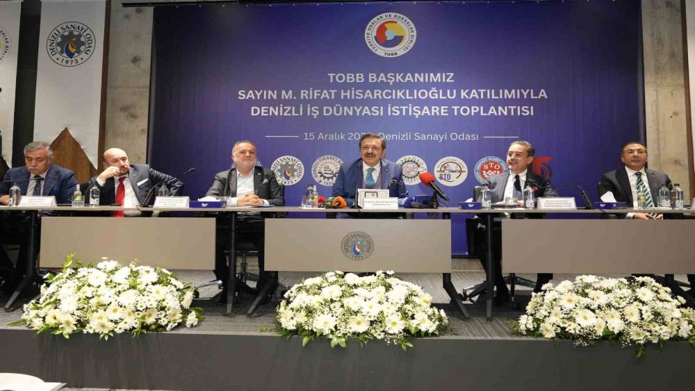 Türkiye ekonomisinin üretim üssü Denizli, önemli bir ekonomi buluşmasına ev sahipliği yaptı. Denizli Sanayi Odası’nın (DSO) ev sahipliğinde gerçekleştirilen toplantıda, Türkiye Odalar ve Borsalar Birliği (TOBB) ve Dünya Odalar Federasyonu (WCF) Başkanı M. Rifat Hisarcıklıoğlu, Denizlili sanayiciler ve çevre illerin oda ve borsa başkanlarıyla bir araya geldi. DSO hizmet binasında yoğun katılımla gerçekleştirilen toplantıda; sanayi ve ticaretin mevcut durumu, küresel rekabet koşulları, finansmana erişim, dijitalleşme, sürdürülebilir üretim ve bölgesel iş birliği olanakları kapsamlı şekilde ele alındı. Denizli iş dünyasının ortak beklentilerinin doğrudan dile getirildiği önemli bir istişare platformu oldu.