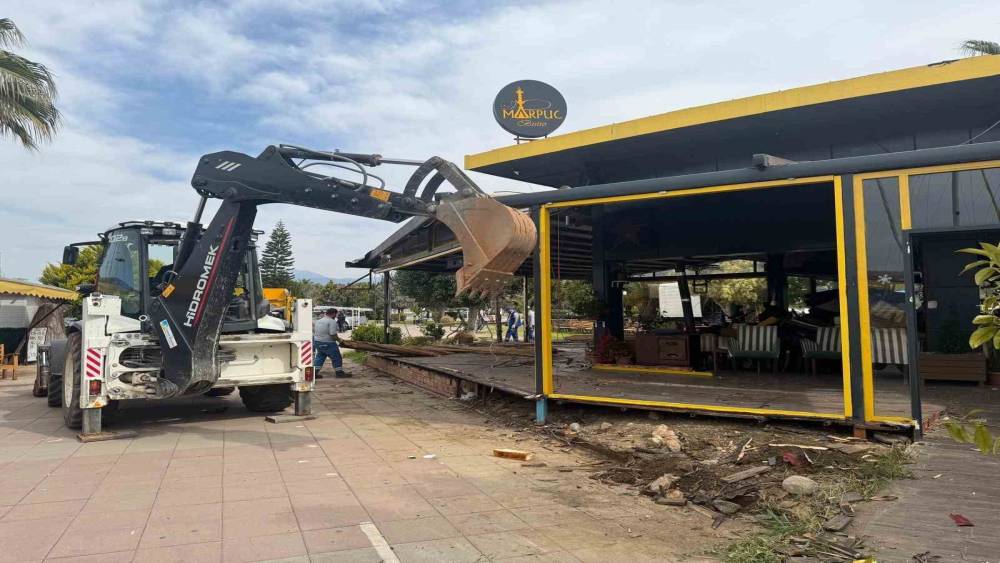 Muğla’nın Fethiye ilçesinde ikinci etap sahil bandında bulunan restoran ve kafelerin kaçak olarak yapılan bölümleri için yıkım çalışmaları başlatıldı.