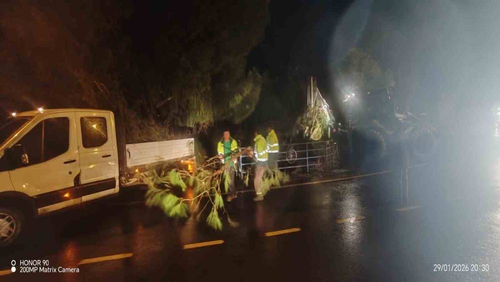 Fırtına mezarlıkta ağaçları devirdi, belediye ekipleri anında müdahale etti