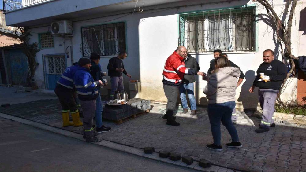 Germencik Belediye Başkanı Burak Zencirci soğuk havaya rağmen özveriyle çalışan işçilere çay götürdü, molalarına katıldı.
